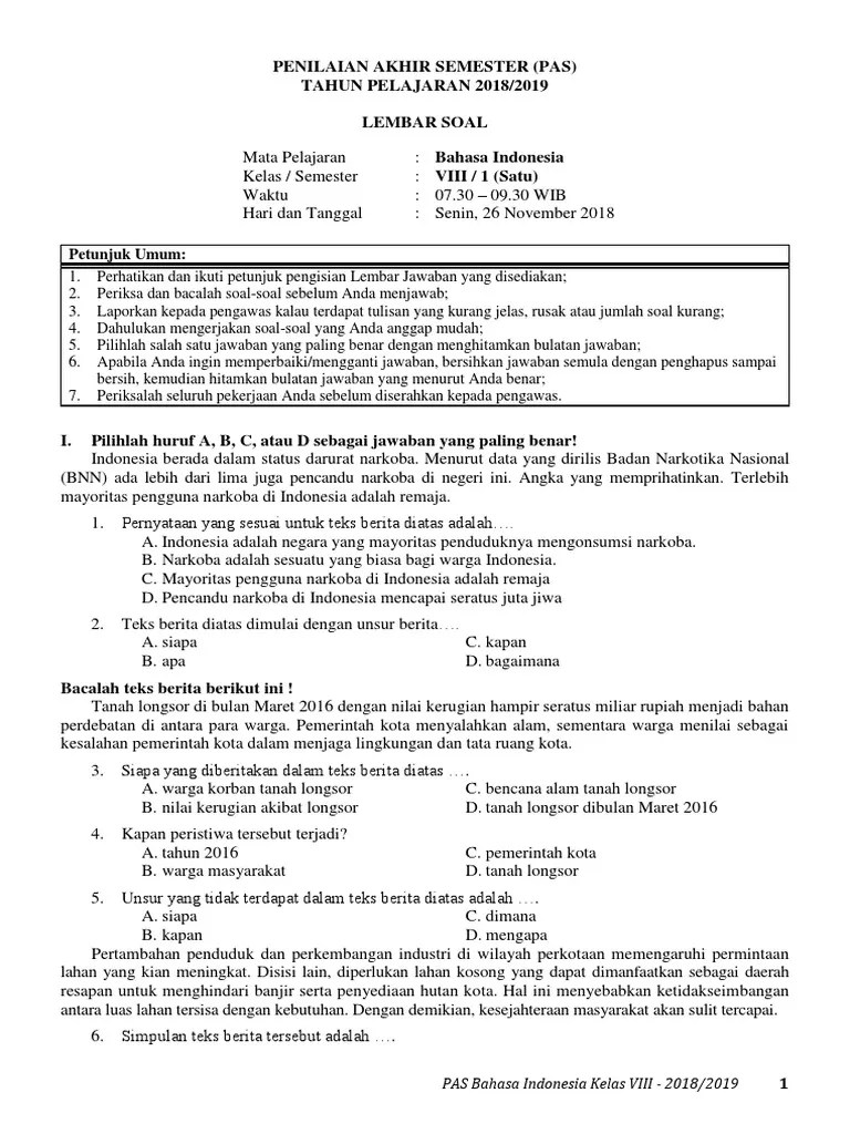 Soal Pas Kelas 8 Semester 2 Bahasa Indonesia : Soal Pas Uas Bahasa Indonesia Kelas 8 Smp Mts Semester 1 Tahun 2020 Andronezia - Check spelling or type a new query.. We did not find results for: Check spelling or type a new query. Maybe you would like to learn more about one of these? Soal pas kelas 8 semester 2 bahasa indonesia.